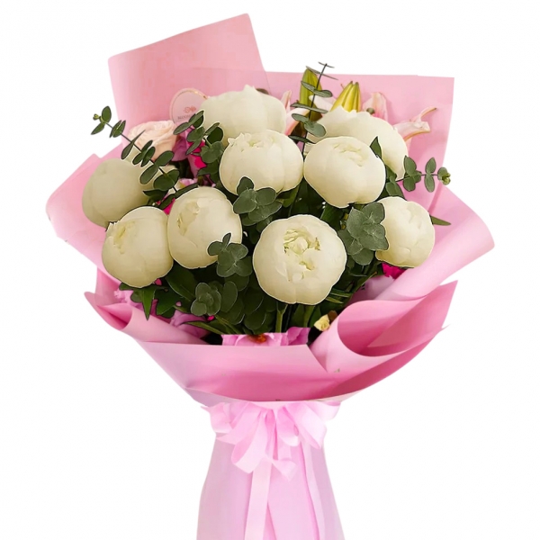 Gelin Buketi 10 Beyaz Şakayık - Canlı